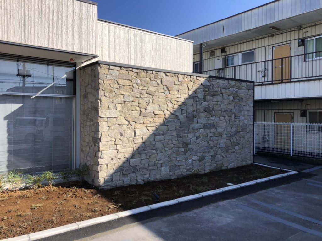 建物のアイキャッチとしてブランディングを促進する石張り発泡スチロールの塀
