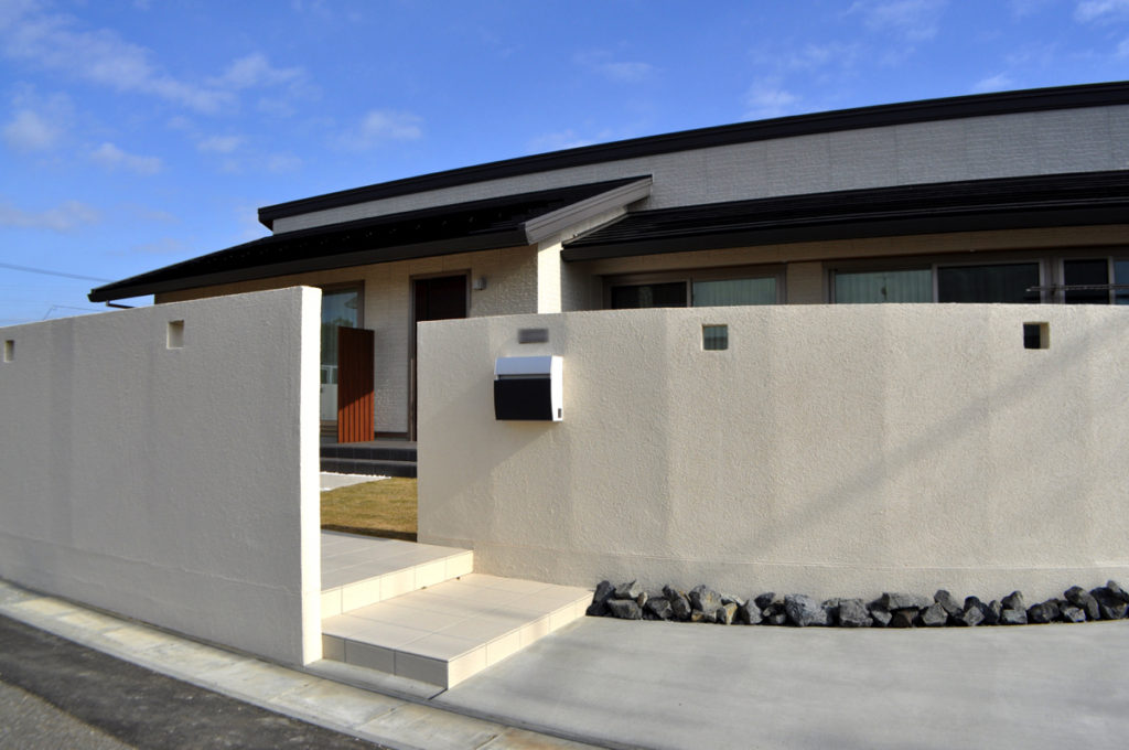 カーブ形状をつけた塀で、ひと味違う雰囲気を演出