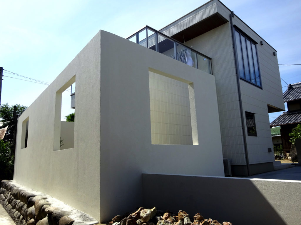 大きな開口部の配置を考え、リビング前の目隠し塀としてもしっかり機能している