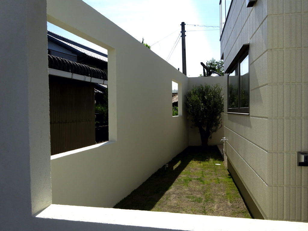 大きな開口部が特徴の塀